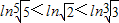 考察对数函数y=lnx,它在(0,+∞)是增函数,