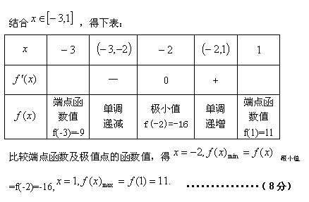 已知函数,(1)求函数的单调区间;(2)当时,求函数的最大值与最小值。