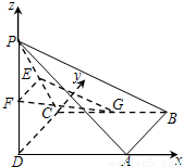 【答案】分析:(1)以D为原点,建立如图所示的空间直角坐标系D-xyz,求出各顶点的坐标及直线与PA与EF的方向向量,然后代入向量数量积公式,易得两个向量的数量积为0,故PA⊥EF;