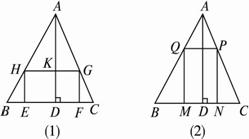 如图(2),矩形的宽MN在BC上,类似地可求得S矩形MNPQ?=18 cm2.