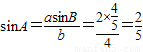 ,我们易求出B的正弦值,再结合a=2,b=4,由正弦定理易求sinA的值;