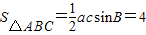 (2)由△ABC的面积S=4,我们可以求出c值,再由余弦定理可求出b值.