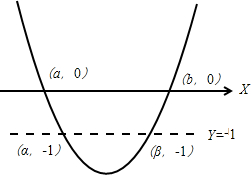 分析:构造函数f(x)=(x-a)(x-b),进而由方程根与函数零点的关系,及二次函数的图象和性质,我们可以画出满足条件的函数图象,结合由已知中方程(x-a)(x-b)+1=0(a<b)有两实根α,β(α<β),可得函数图象与直线y=-1也有两个交点,数形结合,即可得到答案.