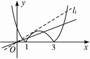 由图象可知y=f(x)与y=mx图象有四个不同的交点,直线y=mx应介于x轴与切线l1之间.?