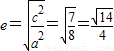 于是a2=8b2,即a2=8(a2-c2),所以椭圆E的离心率