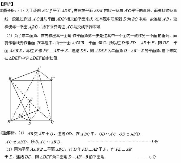 如图,正三棱柱ABC-A'B'C'中,D是BC的中点,AA'=AB=2.