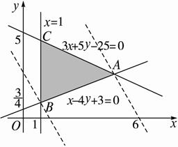 ,且随z变化的一组平行直线.由图可知,当直线经过可行域上点A(5,2)时,截距-