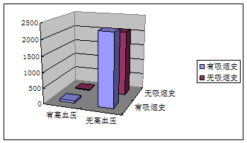 4500人按有无吸烟史和是否患高血压,分类得到列联表如下。画出柱形图,检验吸烟与患高血压有无关系,并解释所的结论的在什么范围内有效。