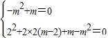 解答:解:(1)∵二次函数f(x)=x2+2(m-2)x+m-m2的图象过原点,且f(2)=0,