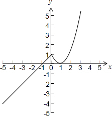 解答 解:∵函数f(x)=$\left\{\begin{array}{l}{(x-1)^{2},x∈[0,+∞)}\\{x+1,x∈(-∞,0)}\end{array}\right.$的图象如下图所示:![]()