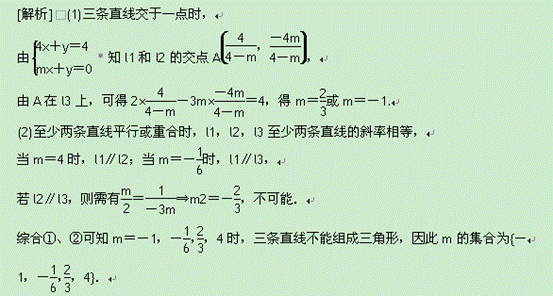 下面三条直线l1:4x+y=4,l2:mx+y=0,l3:2x-3my=4不能构成三角形.求m的取值范围.