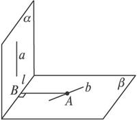 在二面角α-l-β的两个面α,β内,分别有直线a,b,它们与棱l都不垂直,则( )