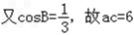 由b2=a2+c2﹣2accosB,可得a2+c2=12,