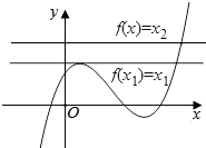 15.若f(x)=x3+x2+bx+c有极值点x1,x2且f(x1)=x1,则关于x的方程3(f(x))2+2f(x)+b=0的不同实根个数是3.分析 求导数f′(x),由题意知x1,x2是方程3x2+2x+b=0的两根,从而关于f(x)的方程3(f(x))2+2f(x)+b=0有两个根,作出草图,由图象可得答案.