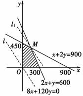 ∴当x=100,y=400时,zmax=80×100+120×400=56000(元).