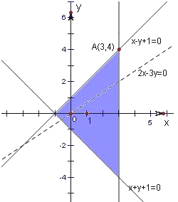 由图可知目标函数在点A(3,4)取最小值z=2×3-3×4=-6.