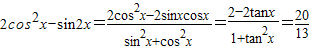 【答案】分析:(1)利用向量平行的坐标运算,同角三角函数间的关系,得到tanx的值,然后化简2cos2x-sin2x即可