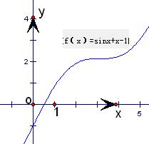 且f(x)=sinx+x-1的零点在原点的右侧,如图.