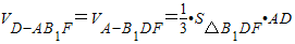 (2)利用等体积法,将要求的三棱锥D-AB1F的体积转化为高和底面都已知的三棱锥A-B1DF体积来求.