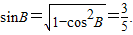 【答案】分析:(1)先根据cosB求得sinB,进而根据正弦定理求得sinA.