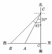 某人在草地上散步,看到他的正西方向有两根相距6米的标杆,当他向正北方向步行3分钟后,看到一根标杆在其南偏西45