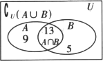 解法1:设全集U={某班学生},A={该班参加数学小组的学生},B={该班参加物理课外小组的学生},则知U中有50个元素,A中有22个元素,B中有18个元素,A∩B有13个元素,A∩ ∴(1)数学和物理两小组至少参加一个小组的学生有27人. (2)数学和物理都不参加的学生有23人. 解法2:利用Venn图来解,如下图,从图上可直接看出上面(1)(2)的结果数学和物理两个小组至少参加一个的有9+13+5=27人,数学和物理都不参加的有50-27=23人.