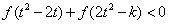 (2)若对任意的t∈R,不等式f(t2-2t)+f(2t2-k)<0恒成立,求实数k的取值范围。