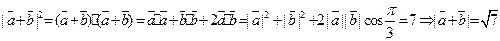若向量,满足||=1,||=2,且与的夹角为,则|+|=________.