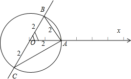 由余弦定理可得AC=$\sqrt{{OA}^{2}{+OC}^{2}-2OA•OC•cos\frac{2π}{3}}$=$\sqrt{4+4-2×2×2×(-\frac{1}{2})}$=2$\sqrt{3}$,