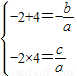 【答案】分析:由已知,可知-2,4是ax2+bx+c=0的两根,由根与系数的关系,得出