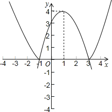 作出函数y=-x2+2x+3的图象,并把x轴下方的图象翻折到x轴上方,如图所示