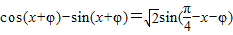 【答案】分析:对函数求导结合两角差的正弦公式,代入整理可得f(x)+f′(x),根据奇函数的性质可得x=0是函数值为0,代入可求φ的值.
