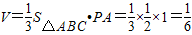 【答案】分析:此题为一三棱锥,且同一点出发的三条棱长度为1,可以以其中两条棱组成的直角三角形为底,另一棱为高,利用体积公式求得其体积.
