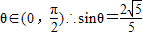 得到sinθ=2cosθ,再结合sin2θ+cos2θ=1求出sinθ和cosθ的值;