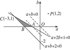 实系数方程f(x)=x2+ax+2b=0的一个根在(0,1)内,另一个根在(1,2)内,求:(1)