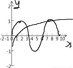 (3)作出y=lgx与y=sinx的图象,由于y=lgx在(0,∞)上为增函数且l,g10=1,lg1=0,