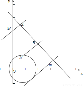 由图象可知当动点N移动到直线为m是会使得AB最大,此时m与圆相切,