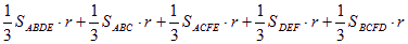 设四面体P-ABC的内切球的球心为O,过O作截面DEF交三条棱于点E、D、F,记内切圆半径为r,则r也表示点O到各面的距离,利用体积的“割补法”知: