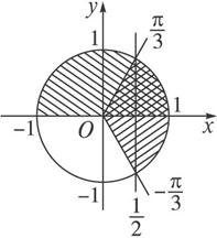 作单位圆如图所示,图中双阴影部分即为函数的定义域{x|2kπ≤x≤2kπ+,k∈Z }.