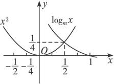 若关于x的不等式x2-logmx<0在(0,)内恒成立,则实数m的取值范围是(    )