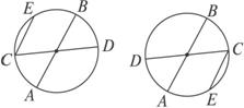 已知AB、CD为两直径,弦CE∥AB,∠COE的度数为50°,则∠DOB的度数为( )A.115° B.65° C.115°或65° D.125°