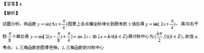 将函数图象上各点的横坐标伸长到原来的3倍,再向右平移个单位,得到的函数的一个对称中心是( )