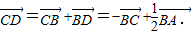 解:由三角形法则和D是△ABC的边AB的中点得,