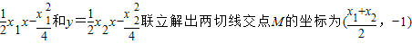 (2)先求出过A、B两点的切线方程,联立求出M的坐标,再代入