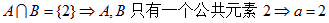 若集合A={x|x≤2}、B={x|x≥a}满足A∩B={2},则实数a= .