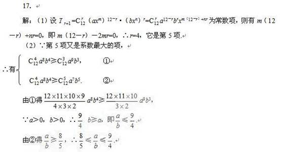 (本小题满分14分)在二项式中有2m+n=0,如果它的展开式里最大系数项恰是常数项.