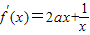 解答:解:∵曲线f(x)=ax2+lnx存在垂直于y轴的切线,(x>0)