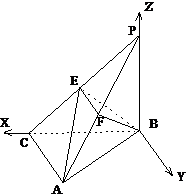 如图建立空间直角坐标系,设PB=BC=AC=2,可求出以下各点的坐标:A(2,2,0),B(0,0,0),C(2,0,0),