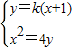 ∴△=(4k)2-4×(-4k)>0解得k<-1或k>0①