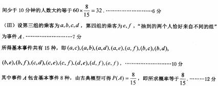 (III)若从上表第三、四组的6人中随机抽取2人作进一步的问卷调查,求抽到的两人恰好来自不同组的概率。